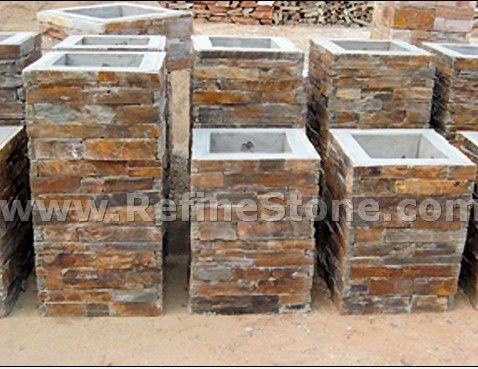 Slate Pillar also called Slate column, that is made of Slate cladding Cement post, inside is post, and outside is Slate panels.