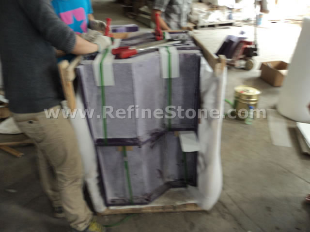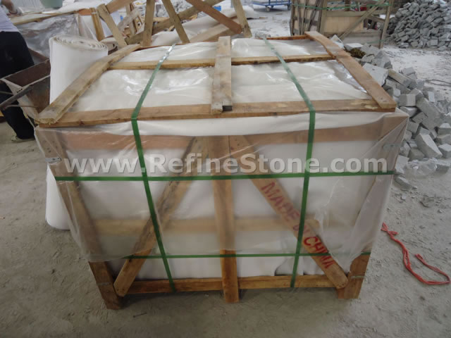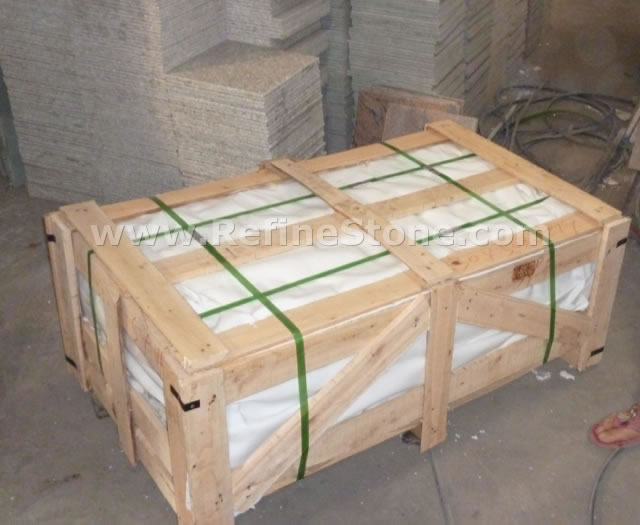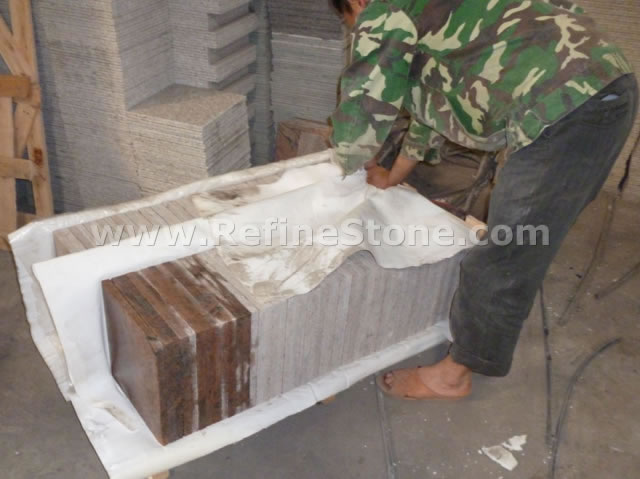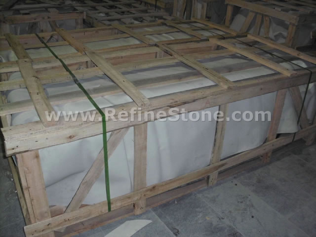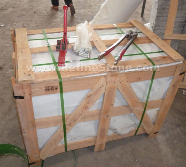 Refine Stone pays great attention to the packing of the stone products. Because we know that the packing is a part of "Quality" we're talking about. For each kind of stone products, we will have our professional workers to design and arrange the packing specially. We know the seaworthy packing will make our products arrive at destination in good conditions, thus will protect the interest of both Sellers and Buyers. Of course, for different kinds of products, such as tiles, slabs, cut-to-size, countertops, carvings, stairs, paving stone, etc, we will have different packing method, such as wooden pallets, wooden crates, wooden bundles, ton-bags, 20kg-polybag (for only pebblestone). Here are some example pictures to show you how we pack different kinds of stone products. We also accept the customization of packing from the specific customer if any customers have special demand for the packing.