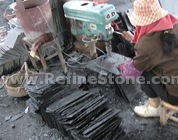 We maintain extensive inventory of slate roof tiles in our own factory in China so we can ship the orders of any sizes quickly. We custom produce slate roof tiles of special shapes, sizes and thickness to fulfill special slate roofing needs. For your convenience to install slate roof shingles, we will pre-drill installation nail holes in your specified locations.