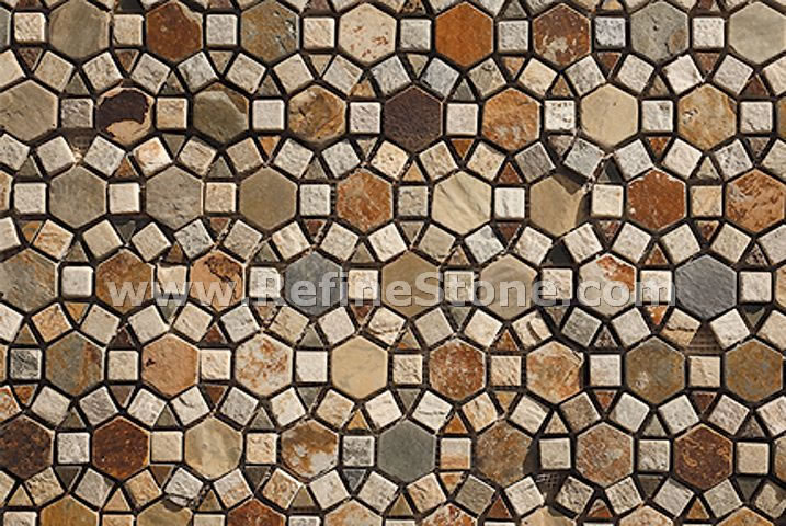 Mosaic and pattern are broadly used for indoor decoration and bath room etc. China Refine Industrial Co.,LIMITED provides the FIRST GRADE quality slate mosaic , slate border and slate pattern.